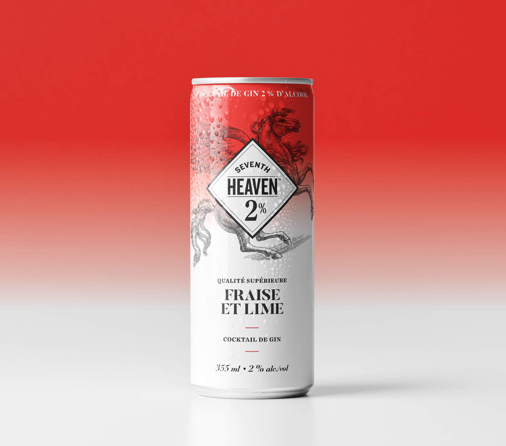 Station 22 a mandaté EZI Brand Design pour décliner les produits Seventh Heaven Gin en cocktail prêts-à-boire faibles en alcool, pour ainsi répondre à la demande croissante de ce type de consommations. Disponibles en plusieurs saveurs, le design se devait de respecter la marque fort bien établie et de laisser transparaître toute cette notoriété mais en ajoutant une touche plus festive et colorée. Il fallait respecter les éléments visuels forts de la gamme tout en conservant le style épuré, léger pour véhiculer l’argument ‘’faible en alcool’’. La caisse de transport a aussi été conçue afin de bien représenter la marque et le design original.